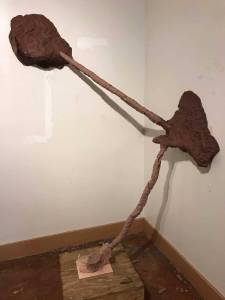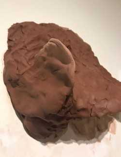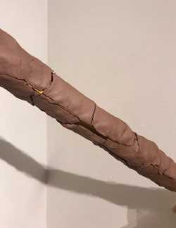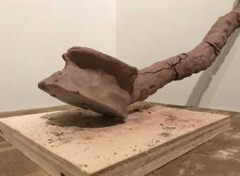 Installation closeups of a project responding to a corner with raw clay.